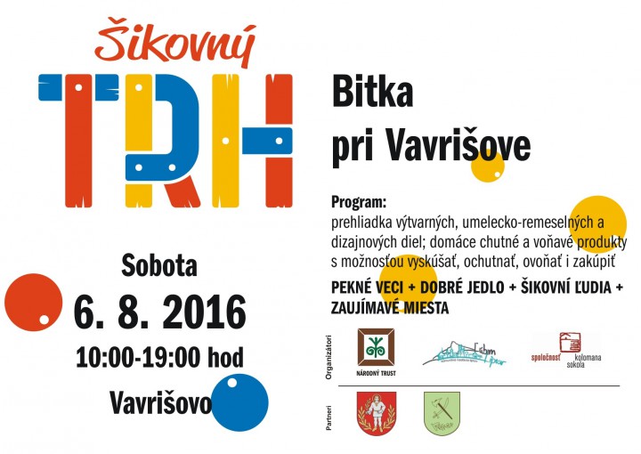 PEKNÉ VECI + DOBRÉ JEDLO + ŠIKOVNÝ ĽUDIA + ZAUJÍMAVÉ MIESTA = ŠIKOVNÝ TRH - BITKA PRI VAVRIŠOVE 6.8.2026