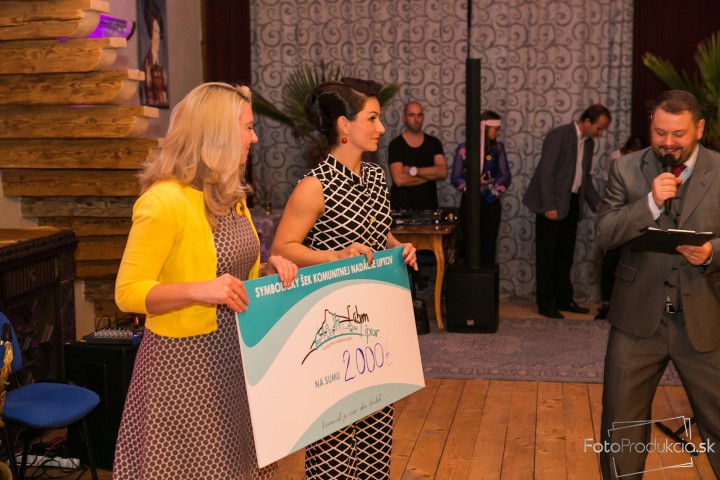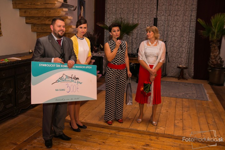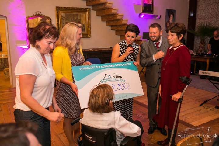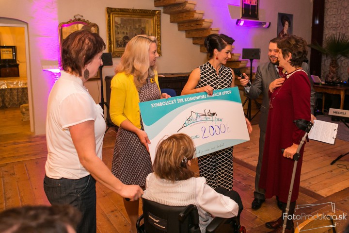 Komunitná nadácia v tento večer venovala symbolický šek v hodnote 2.000 EUR Klubu sklerózy multiplex Liptovský Mikuláš na podporu rehabilitačného pobytu členom klubu v Dudinciach.