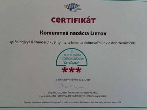 Komunitná nadácia Liptov verím, že aj pri realizácii aktiít na rok 2017 dokáže opäť osloviť, zaujať a zapojiť množstvo skvelých dobrovoľníkov a spoločne urobiť veľa komunitných a prospešných aktivít v našom meste / regióne. Pretože len vďaka dobrovoľníkom mohla získať takéto krásne ocenenie.