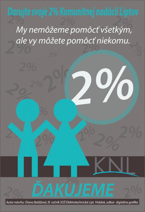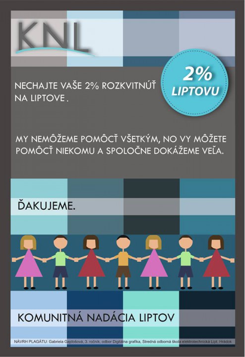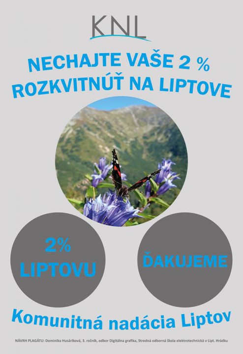 Tento rok na našej 2% kampani pracovali aj šikovní študenti SOŠE Liptovský Hrádok, odbor Digitálna grafika. Sami sa presvedčte aké kreatívne grafiky navrhli. Už od dnes ich môžete zaregistrovať aj na reklamných paneloch v našich mestách.
