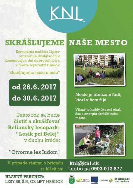 Komunitná nadácia Liptov v spolupráci s Lesmi SR, Š.P., OZ Liptovský Hrádok organizujú ďalší ročník Komunitných dní dobrovoľníctva v meste Liptovský Hrádok.