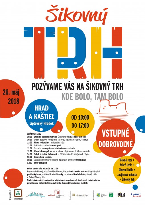 Srdečne vás všetkých pozývame na Šikovný trh, ktorý sa bude konať 26.5.2018 na hrade Grand Castle v Liptovskom Hrádku od 10:00 hod. - do 17:00 hod.