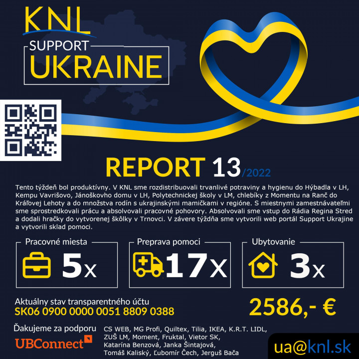 Prvý týždňový report Liptov Ukrajine. Takto sa k vám budú dobrovoľníčky z KNL Natali a Maťka prihovárať. Každý týždeň budeme verejnosť, dobrovoľníkov i darcov informovať čo sme urobili, komu pomohli a kde išli vaše dari. Zároveň budeme informovať o aktuálnom stave financií na transparentnom účte.