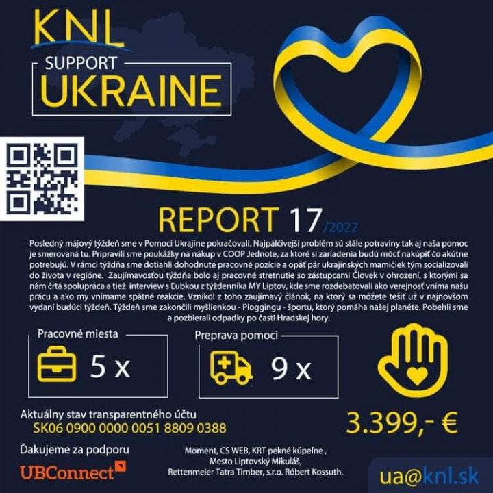 Opäť týždňový report KNL a Pomoc Ukrajine. Každý týždeň je pre nás novou výzvou s novými výsledkami a novou výzvou na nasledujúci týždeň.