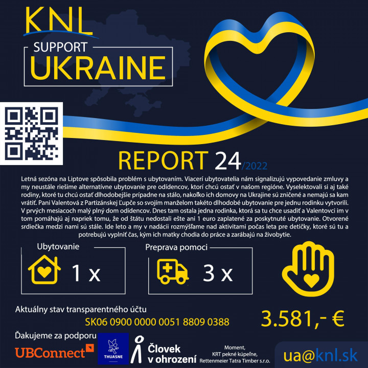 Aj tento týždeň reportujeme činnosti v rámci programu Pomoc Ukrajine. Ďakujeme všetkým, ktorí pri nás stoja a pomáhajú nám.