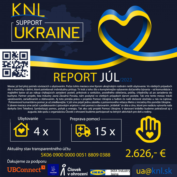 Práca na projekte Pomoc Ukrajine prebieha aj počas leta. Cez letný režim sme zvolili report na mesačnej báze. Ďakujeme všetkým, ktorí nám stále pomáhajú a spoločne Dávame Dobro Druhým.