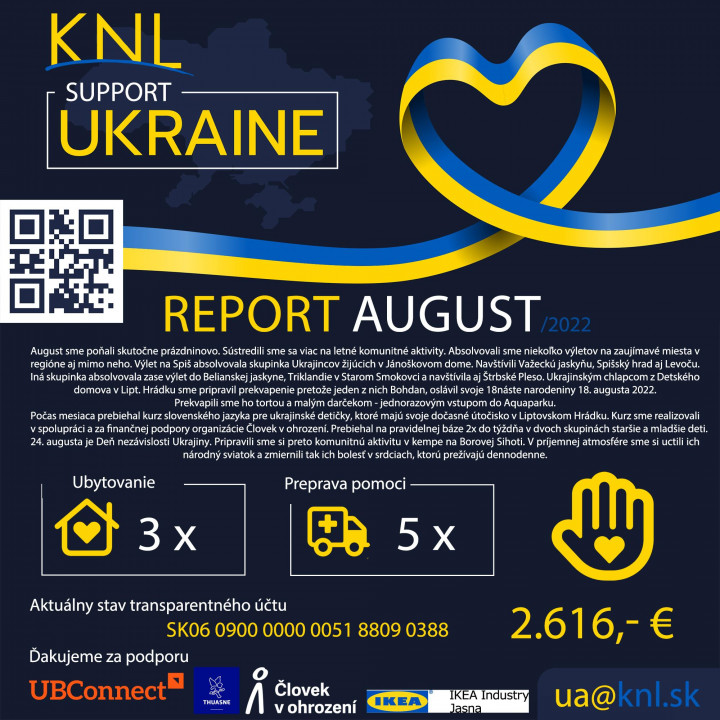 Vojna stále pokračuje a aj odídenci, ktorí našli svoje dočasné bývanie v regióne sa už pomaly začleňujú do spoločnosti. Uvidíme čo prinesie čas a kam budú smerovať naše kroky a naša pomoc.