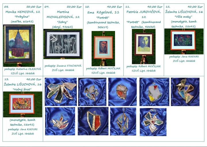 Všetky diela darovali žiaci umeleckých škôl v Liptovskom Hrádku a už v nedeľu 26.4.2015 môže byť ktorýkoľvek obraz či šperk váš.