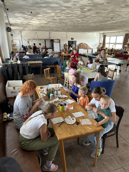 Podujatie sa začalo o 15:00 hod., niektorí účastníci však prišli už skôr. Deťom sme pripravili občerstvenie v podobe nealko nápojov, chipsov a keksov. Čakali ich sladkosti - žuvačky, lízatká, Brumík a jabĺčka). Mali sme pripravené stanovištia: maľovanie na tvár - dobrovoľníčka Ukrajinka, tvorenie púpav z textilného materiálu - Olga z YMCA LM, servítková metóda - dobrovoľníčka Slovenka, škola tanca - dobrovoľníčka Ukrajinka, spoločenské hry, kalčeto, ping pongový stól. Mamičkám, babičkám a oteckom sme spravili kávičku a vychutnali si posedenie a rozhovory s ostatnými dospelými. Na záver si zaspievali ukrajinské piesne a hymnu a spravili sme si spoločnú fotku.