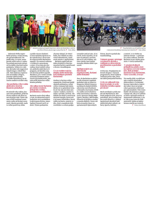 Samozrejme. Aj tento rok sa nám podarilo osloviť partnerov, ktorí boli ochotní financovať náklady spojené s podujatím, a tak sme aj pre 11. ročník garantovali, že sto percent výťažku zo štartovného venujeme rodinám, ktoré to potrebujú. Tento rok sa vyzbierala suma 13 519 eur. Dvetisíc eur sme venovali dlhoročnej účastníčke Barlatónu Dominike Gerecovej z Bobrovca na doplatenie špeciálneho bajku. Trikrát po 3 840 eur sme venovali bojovníkom: Tomáškovi z Ružomberka (8 rokov), ktorý od narodenia trpí detským autizmom, výnimočnému albiníkovi s množstvom pridružených diagnóz Kristiánkovi z Liptovského Hrádku (4 roky) a Dominikovi z Ľubele (6 rokov) s detskou mozgovou obrnou a epilepsiou.Výnimočné na tohtoročných príbehoch je to, že vo všetkých prípadoch je hrdinkou mamina. Samoživitrľka.