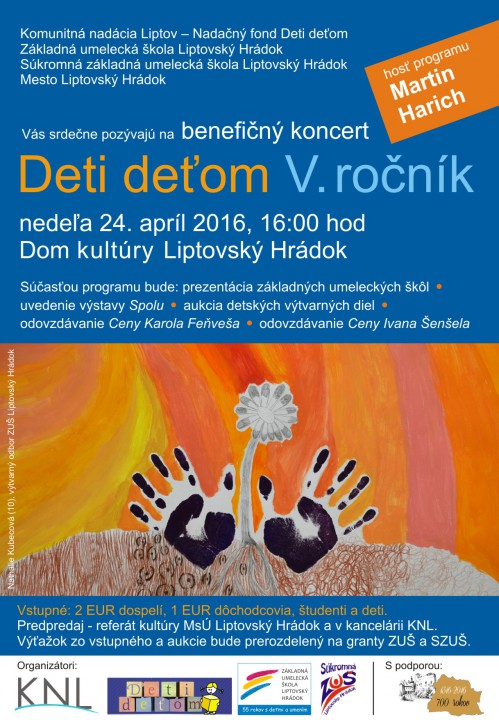 Komunitná nadácia Liptov - Nadačný fond Deti deťom, Základná umelecká škola Liptovský Hrádok, Súkromná základná umelecká škola Liptovský Hrádok, mesto Liptovský Hrádok Vás srdečne pozývajú na benefičný koncert