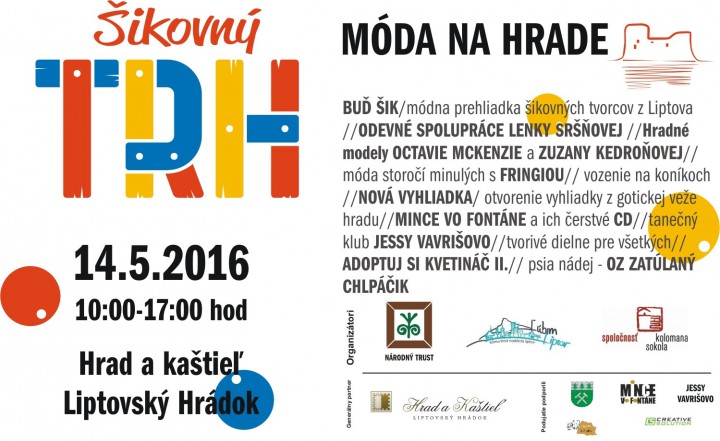 Komunitná nadácia Liptov, Národný Trust n.o., občianske združenie Spoločnosť Kolomana Sokola v spolupráci s Grand Castle v Liptovskom Hrádku a s mestom Liptovský Hrádok dňa 14. mája 2016 v čase od 10:00 do 17:00 hod pripravujú v poradí už tretí Šikovný trh na Hrade a v Podhradí v Liptovskom Hrádku. Hlavným cieľom podujatia je prezentovať prácu šikovných ľudí žijúcich alebo tvoriacich v Liptove ako aj poukázať na krásu a hodnoty významných a zaujímavých miest v našom regióne. Šikovný trh – Móda na Hrade ako je už v názve naznačené sa bude niesť v znamení módy.