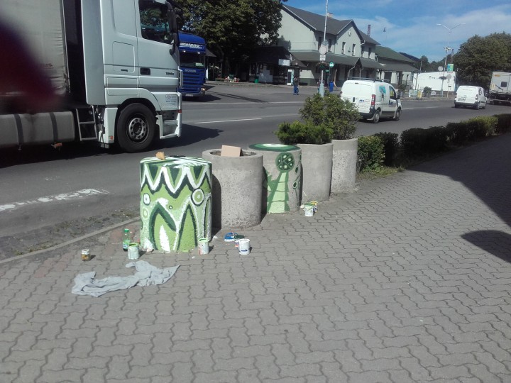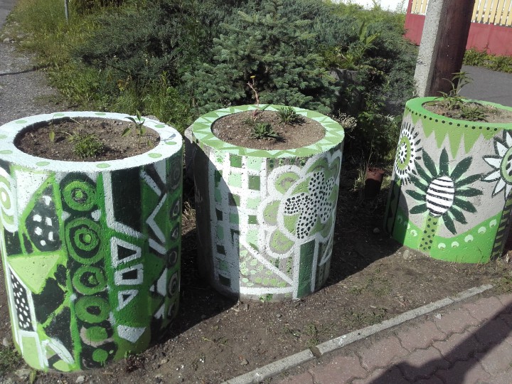 Na foto prvé kvetináče pred namaľovaním a po.