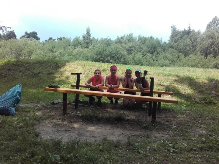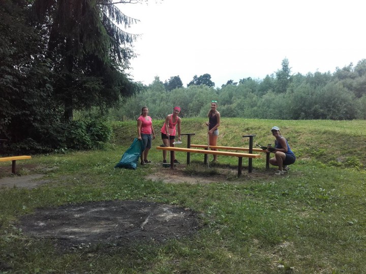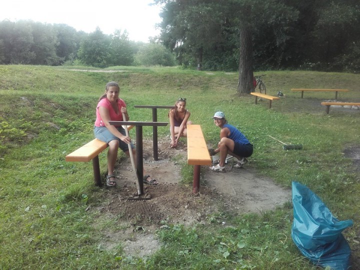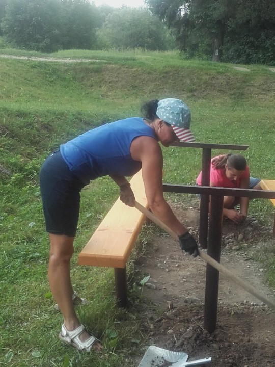 Spoločnými silami sme dopoludnia dokončili práce: vymaľovali stĺpiky na nových lavičkách, pozametali špaky okolo tých starých a upravili terén.