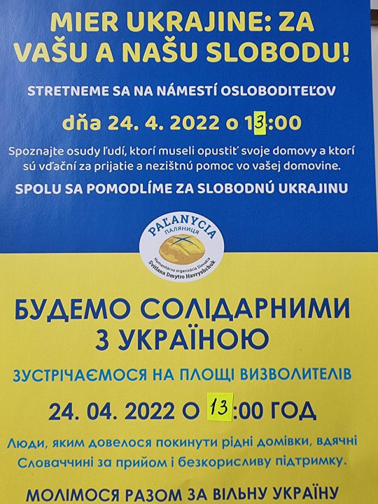 08.04.2022: Akcia Solidarita s Ukrajinou! Uskutoční sa v Liptovskom Mikuláši Na Námestí Osloboditeľov 9.4.2022 o 12:00 Ukážeme svoju solidaritu s Ukrajinou ! Pomodlíme sa spolu za Ukrajinu ! Poďakujeme Slovenským občanom za pomoc !